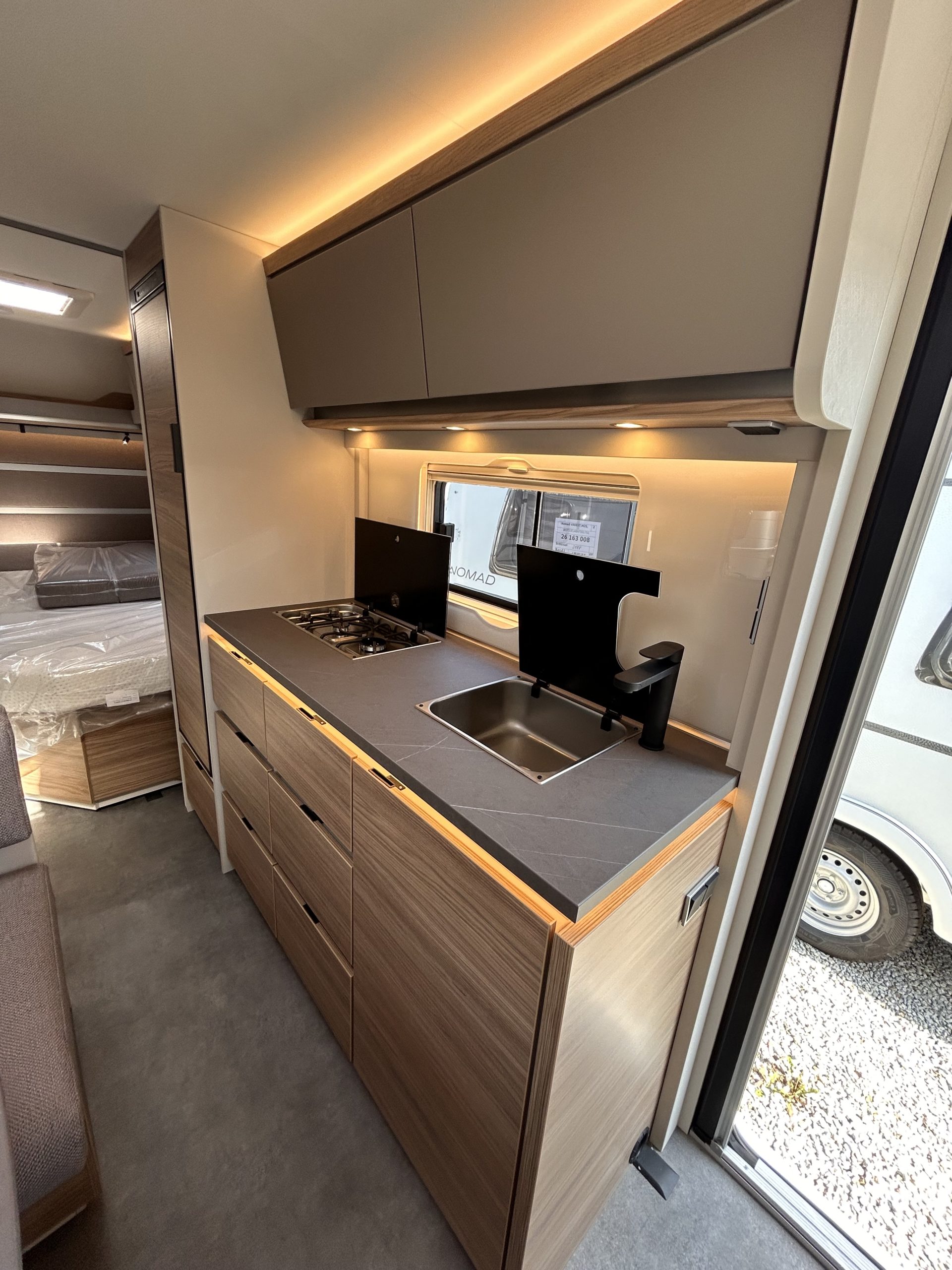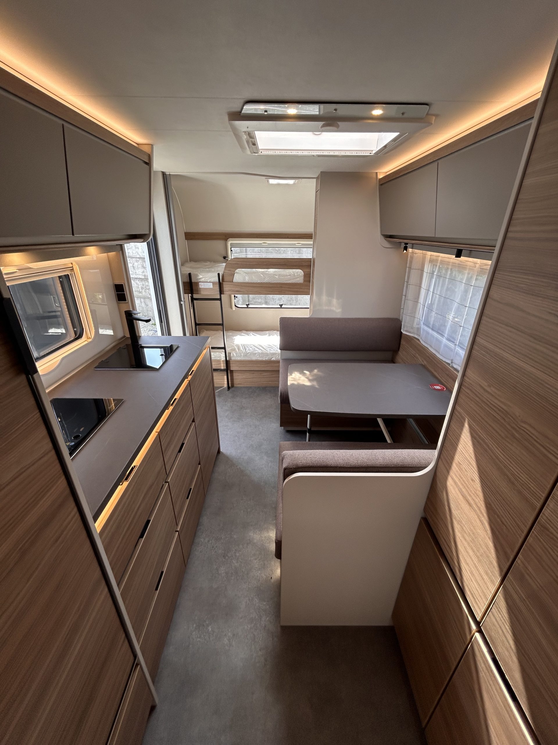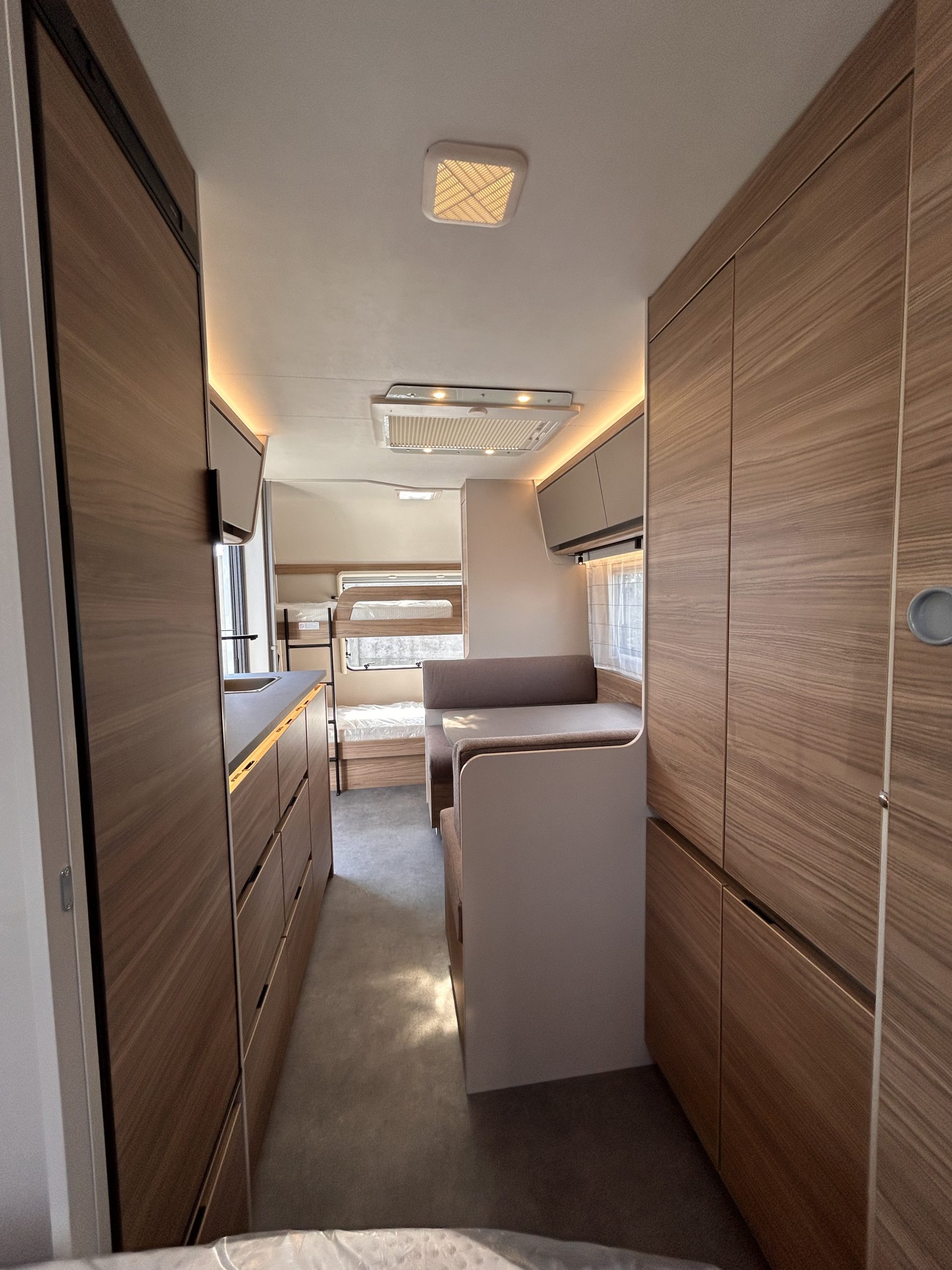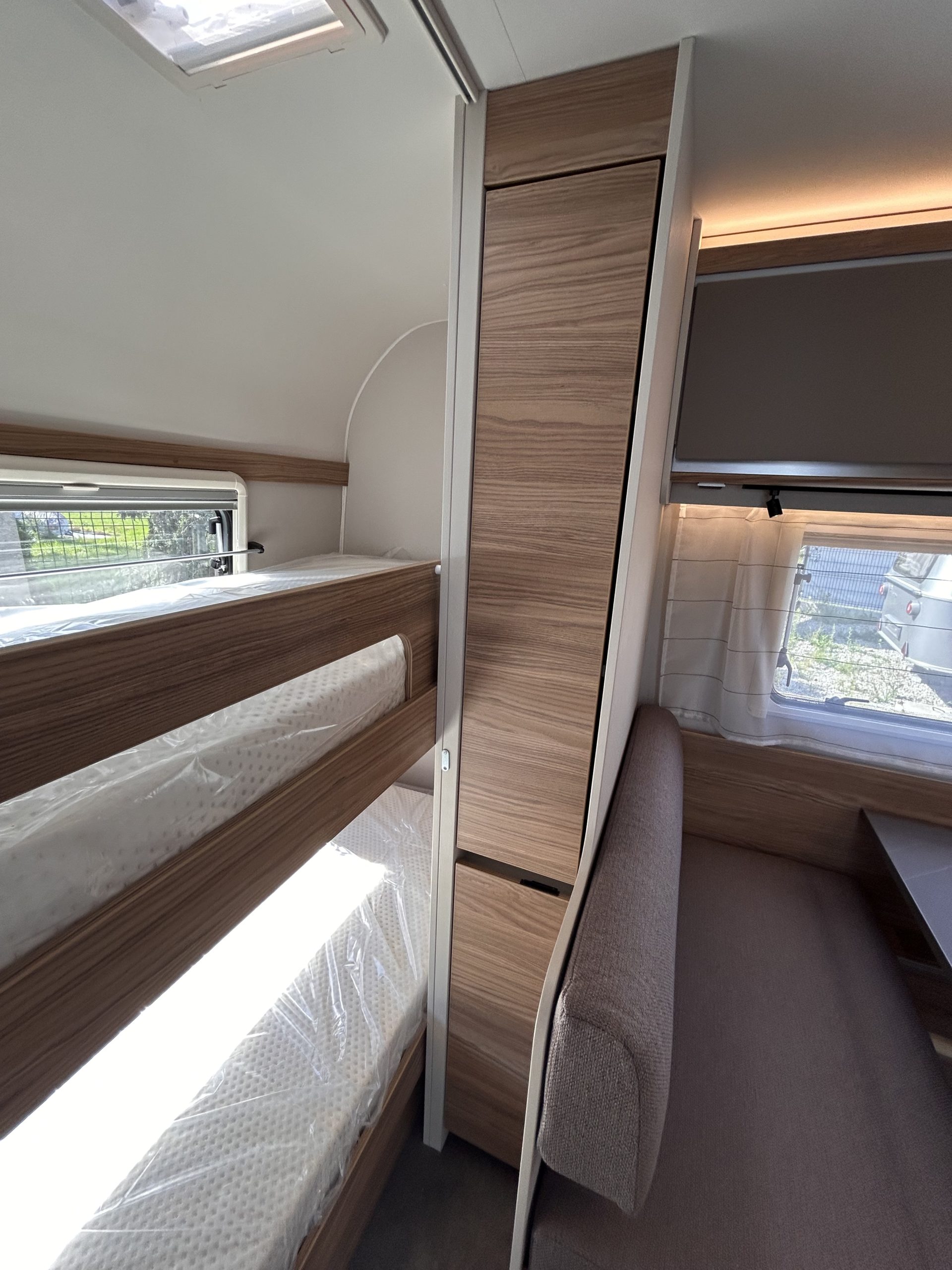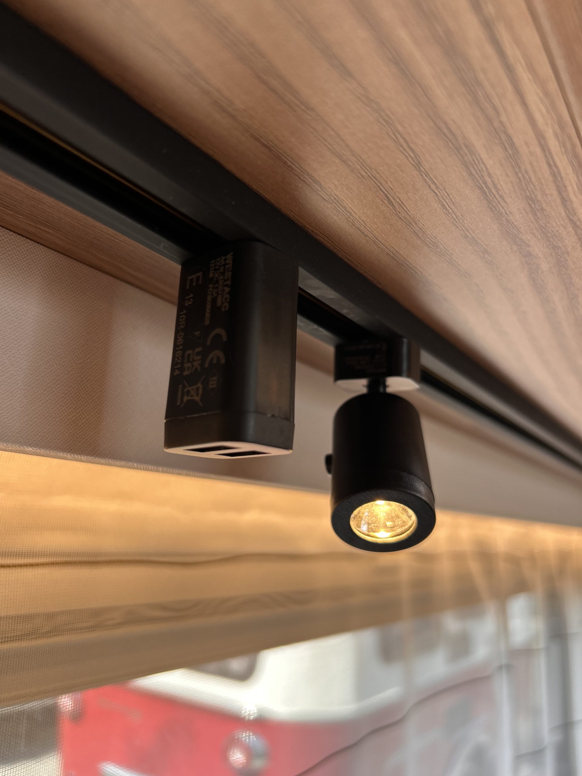 - System szyn z oświetleniem LED 12 V (nad wezgłowiem łóżka i kanapą)