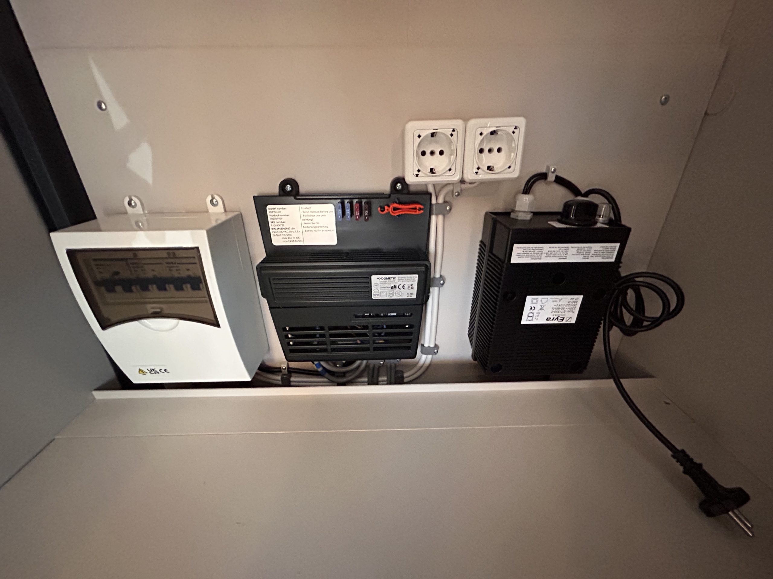 - Kompaktowy elektroblok z bezpiecznikiem automatycznym 230 V, bezpiecznikiem 12 V